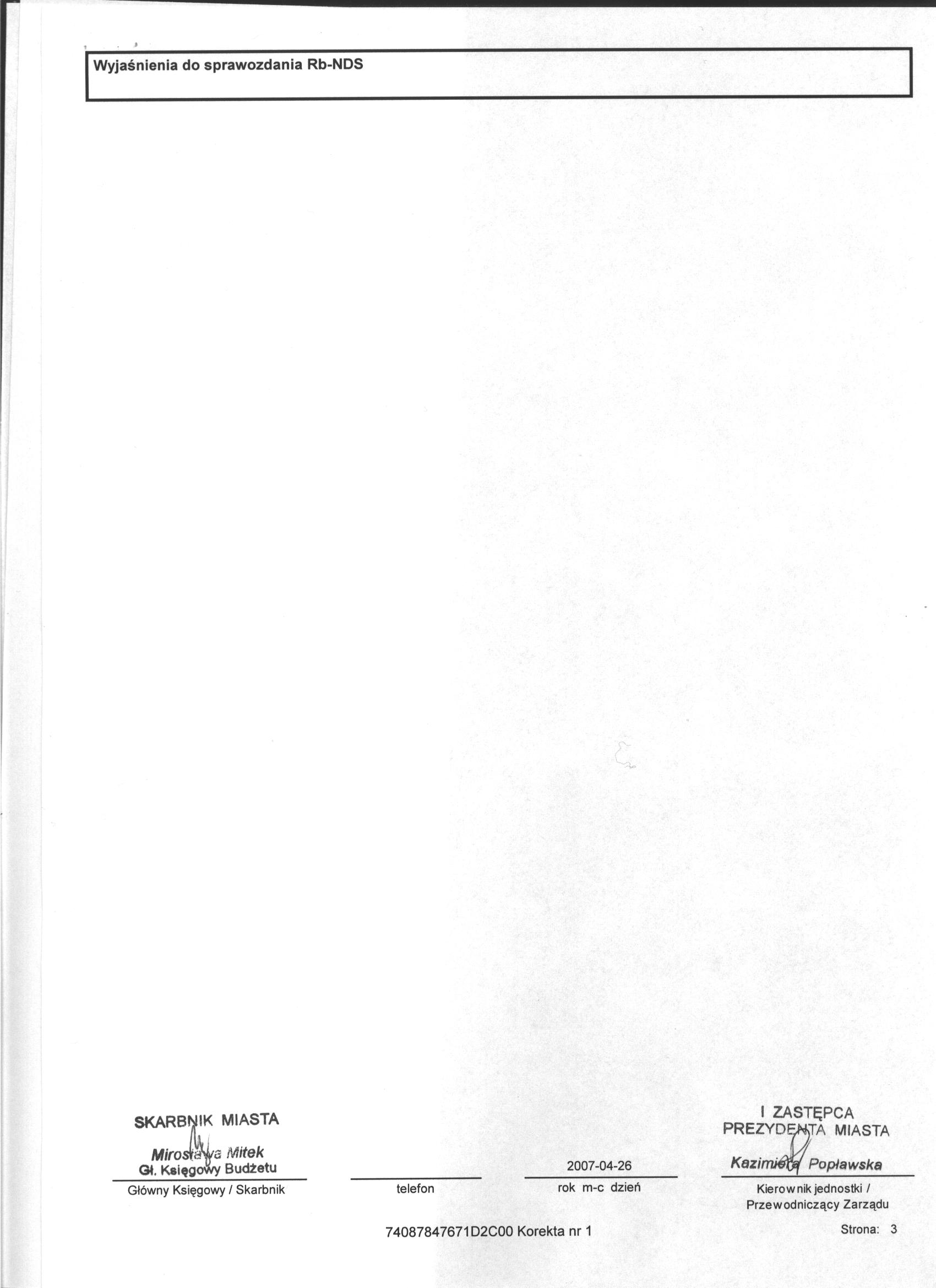 Rb-NDS Kwartalne Sprawozdanie o nadwyżce / deficycie - I kwartał 2007r. - cz.3
