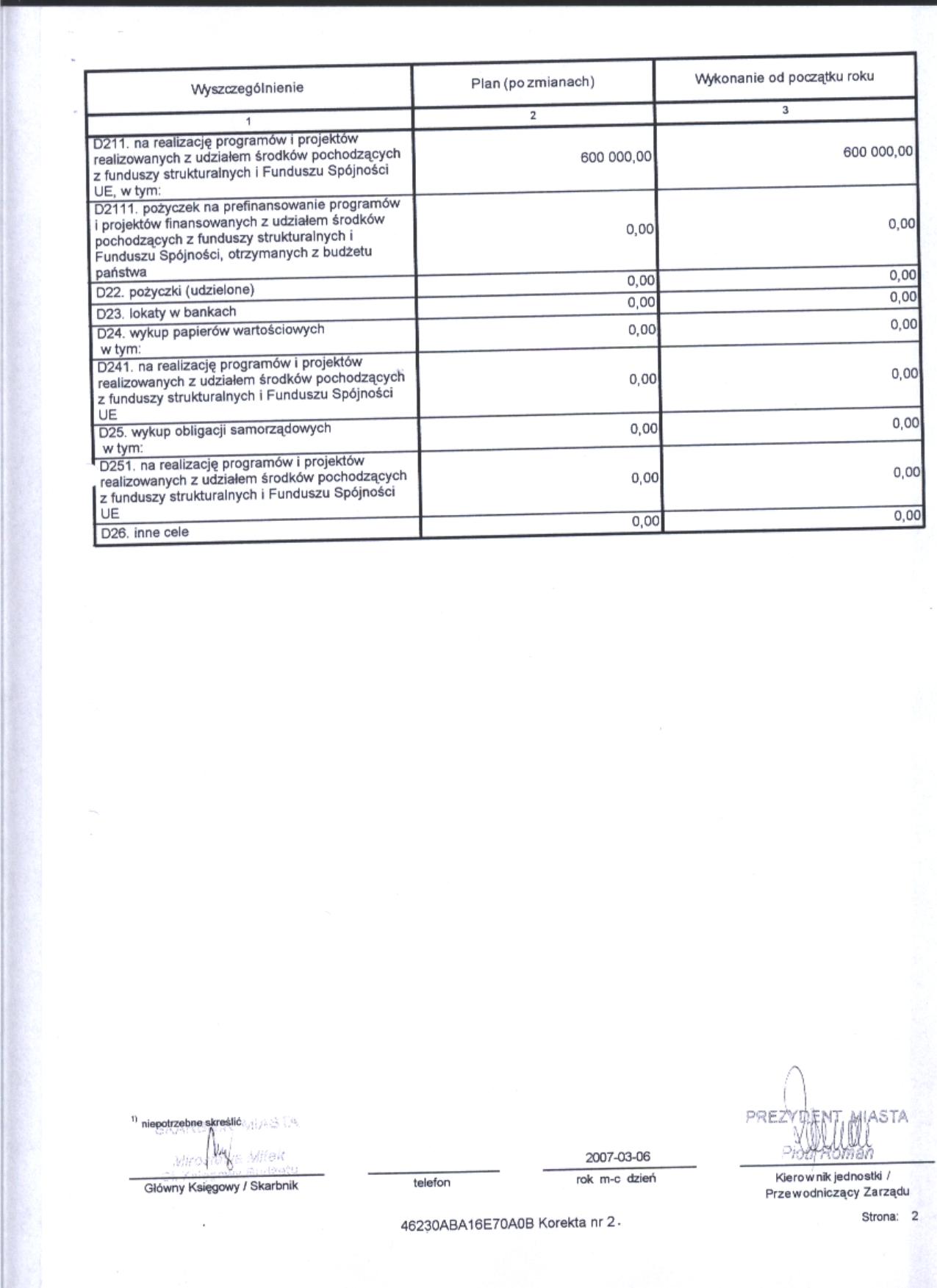 Prezydent Miasta Bolesławiec podaje do publicznej wiadomości informacje za 2006r.