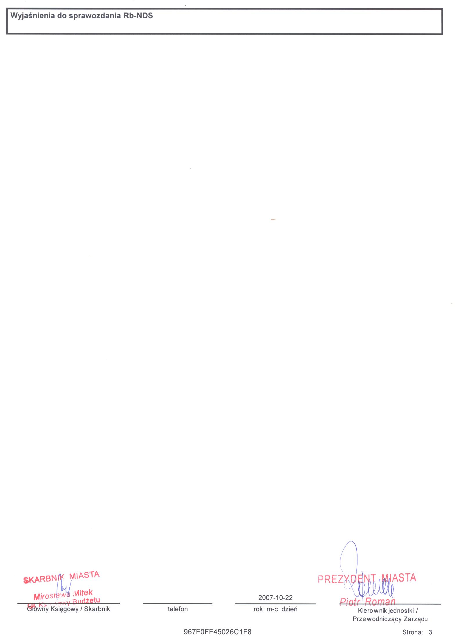 Rb-NDS Kwartalne Sprawozdanie o nadwyżce / deficycie - III kwartał 2007 r. - cz. 3