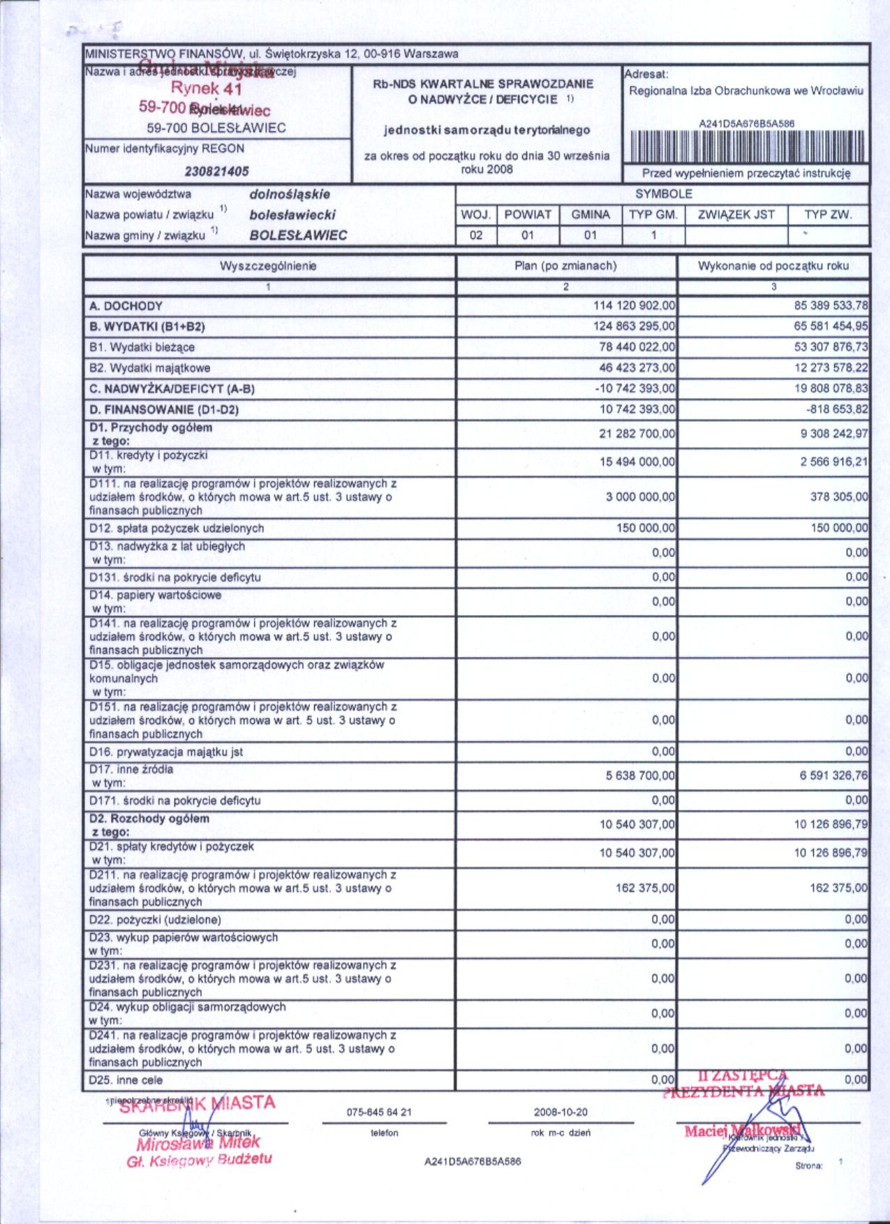 Rb-NDS Kwartalane Sprawozdanie o nadwyżce / deficycie - III kwartał 2008r. cz.1