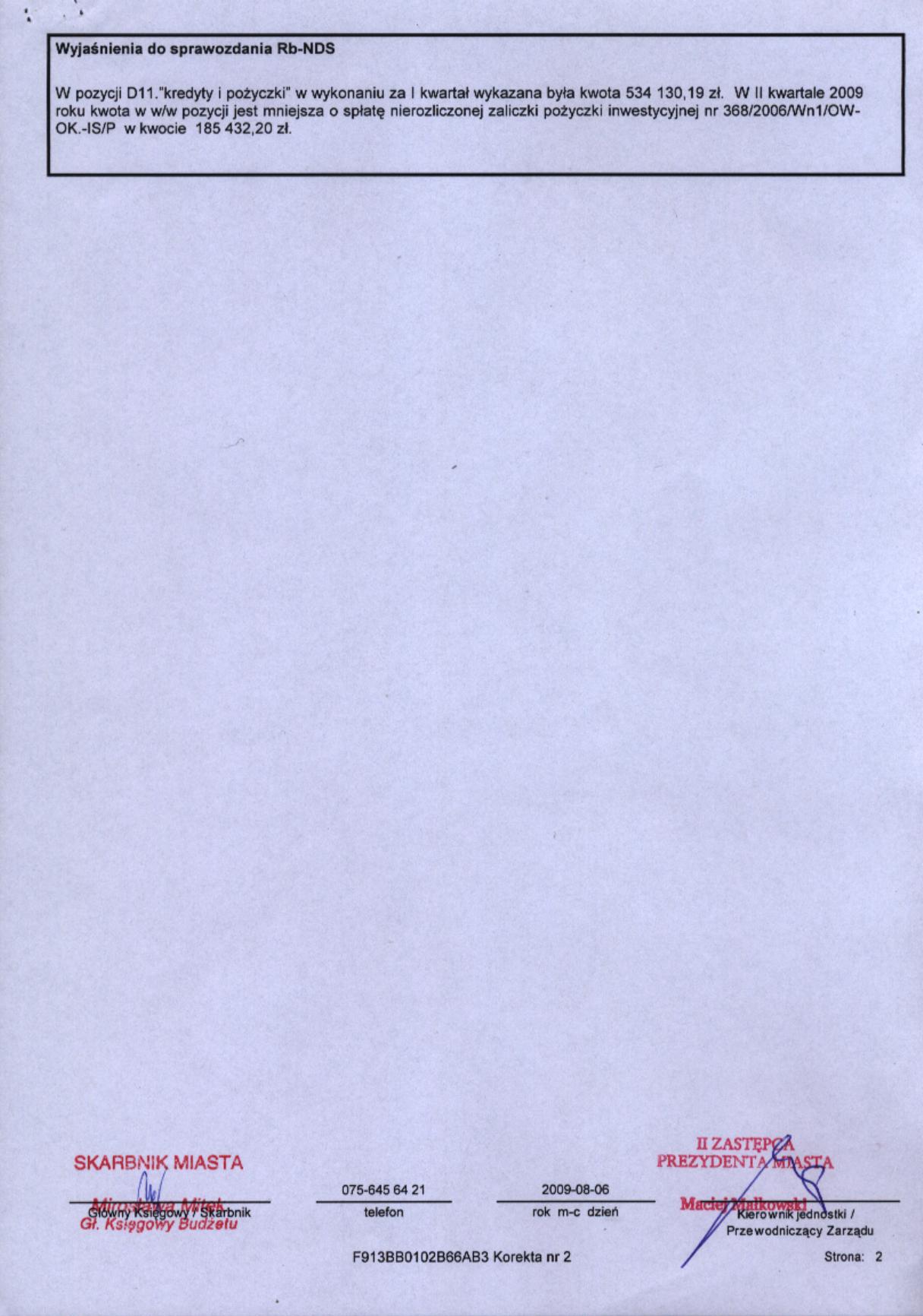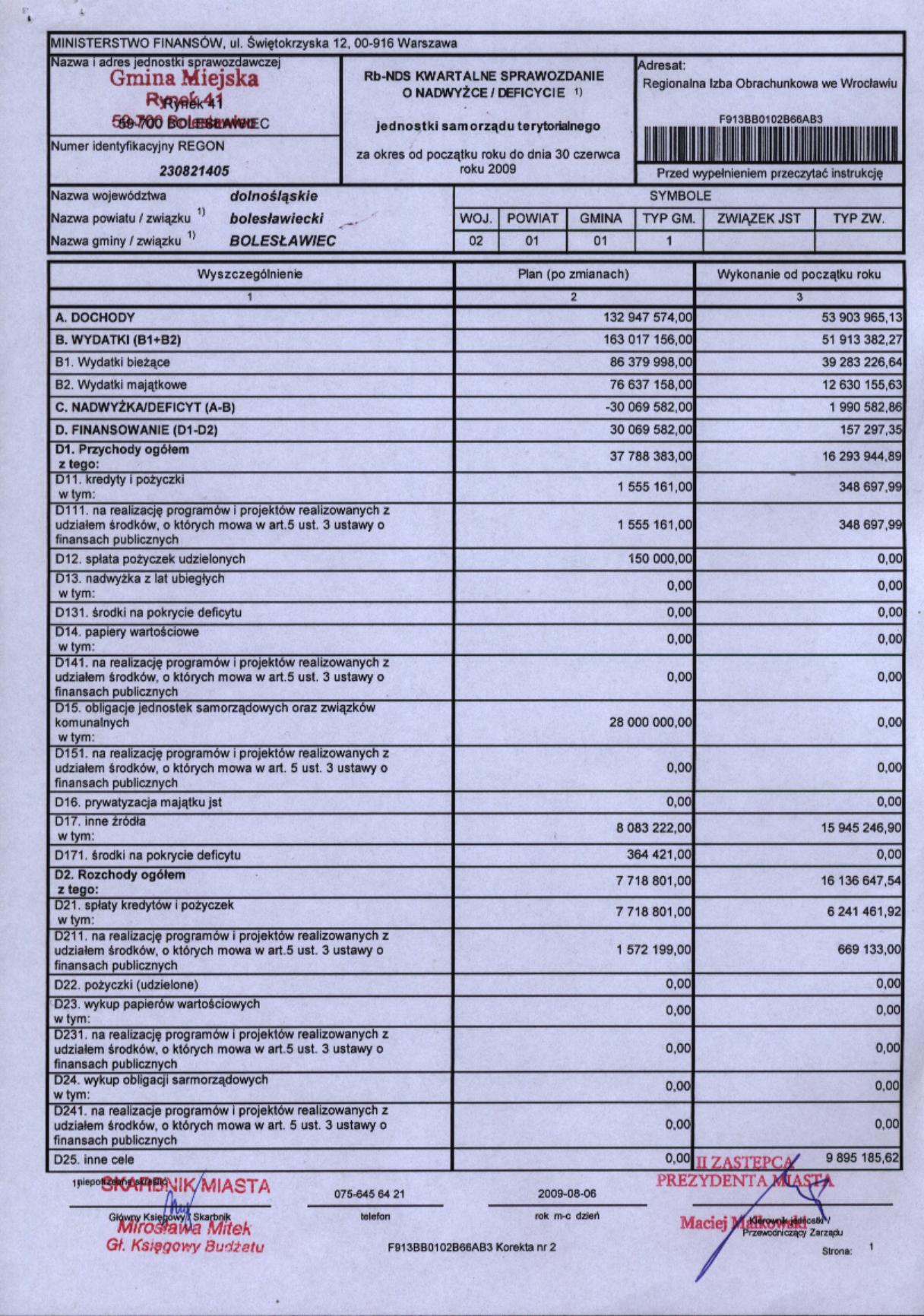 Rb-NDS kwartalne sprawozdanie o nadwyżce/deficycie za II kw. 2009r.