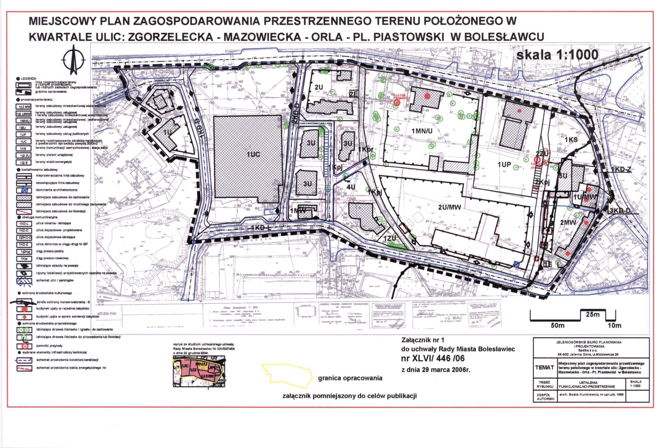 Uchwała Nr XLVI/446/06 Rady Miasta Bolesławiec z dnia 29 marca 2006 r. w sprawie uchwalenia miejscowego planu zagospodarowania przestrzennego terenu położonego w kwartale ulic: Zgorzelecka - Łokietka - Mazowiecka - Orla - Pl. Piastowski w Bolesławcu. - zal1