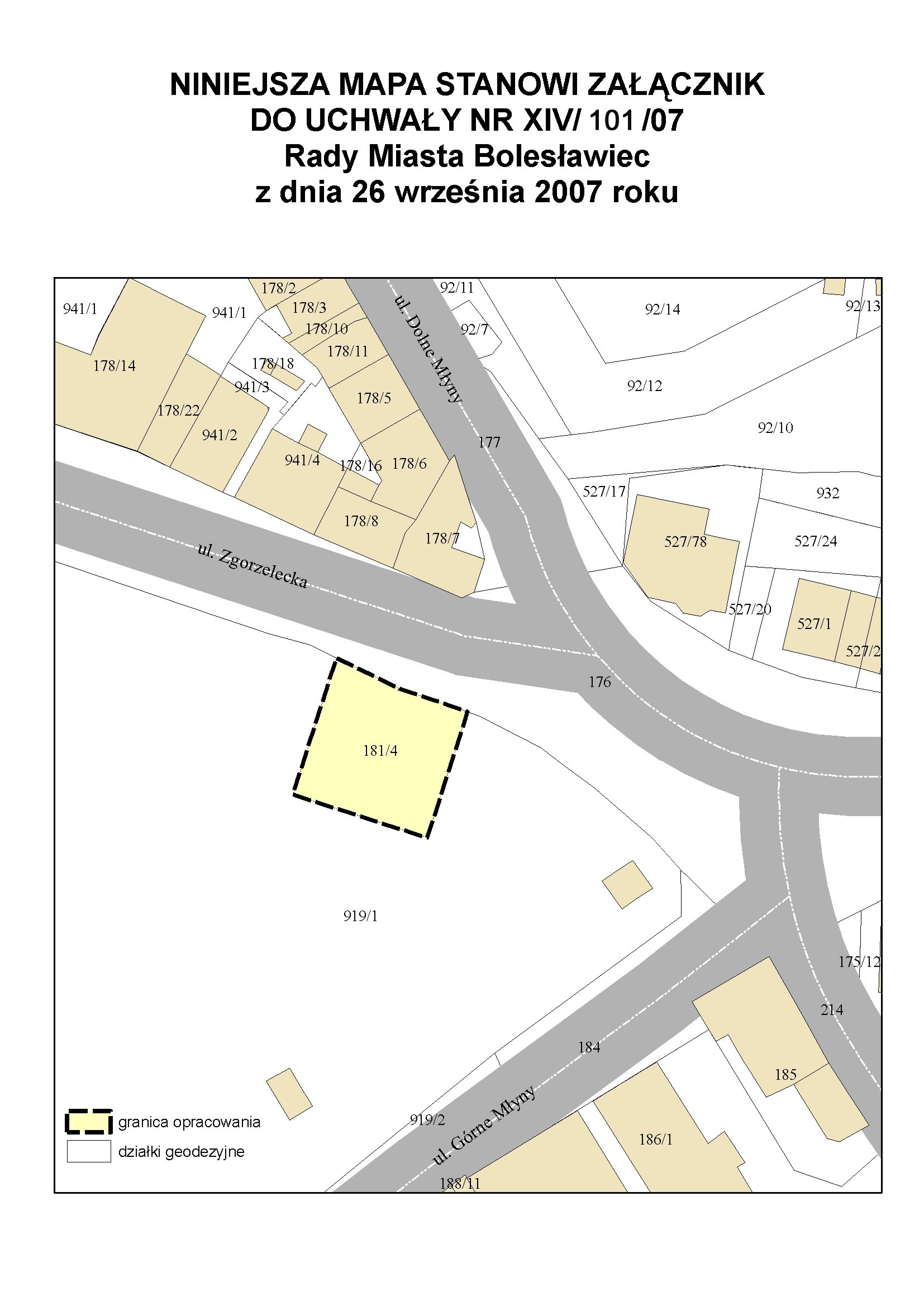 Uchwała Nr XIV/101/07 Rady Miasta Bolesławiec z dnia 26 września 2007 r. w sprawie przystąpienia do sporządzenia miejscowego planu zagospodarowania przestrzennego dla terenu zlokalizowanego przy ul. Zgorzeleckiej w Bolesławcu