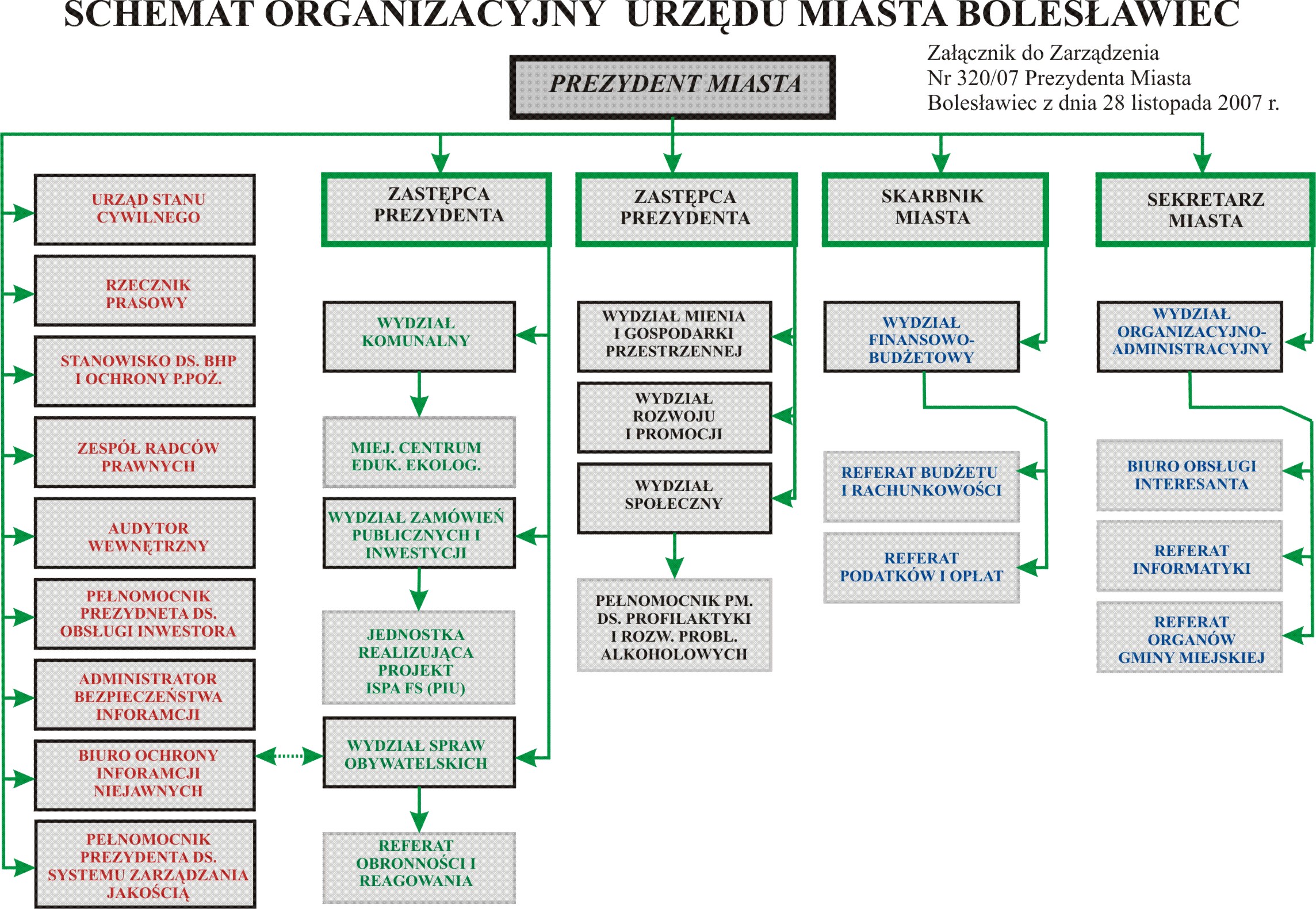 Zarządzenie Nr 320/07 o zmianie zarządzenia Nr 50/03 Prezydenta Miasta Bolesławiec z dnia 4 marca 2003 r. w sprawie Regulaminu Organizacyjnego Urzędu Miasta Bolesławiec (z późn. zm.)