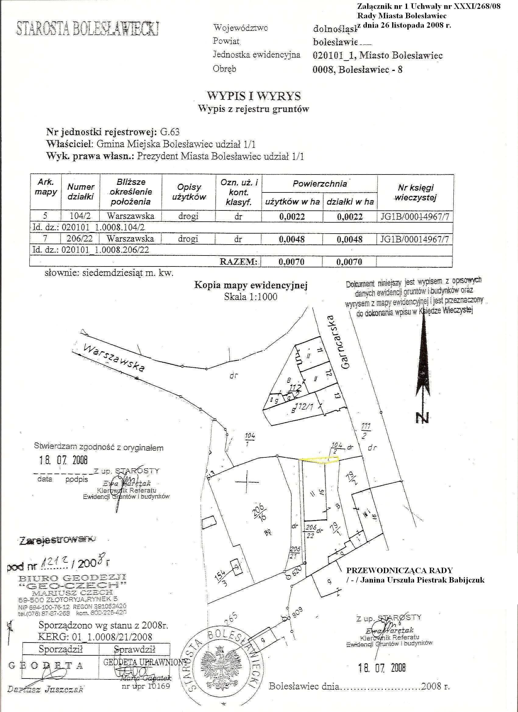 Uchwała Nr XXXI/268/08 z dnia 26 listopada 2008 r. w sprawie pozbawienia części ulicy kategorii drogi gminnej na terenie miasta Bolesławiec.