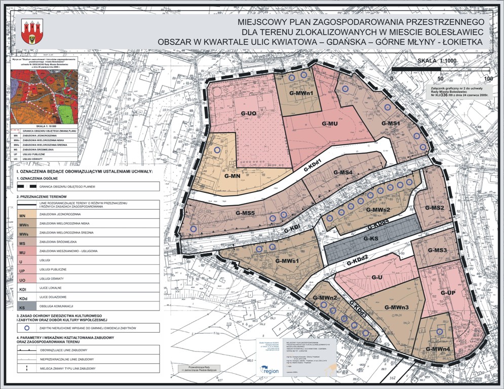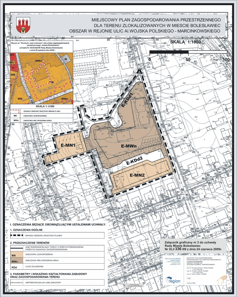 Uchwała Nr XLI/336/09 z dnia 24 czerwca 2009r. w sprawie uchwalenia miejscowego planu zagospodarowania przestrzennego terenów zlokalizowanych w mieście Bolesławiec (obszar nr 1 - w obrębie ulic Sądowa - Głowackiego - Kubika - Piaskowa - Zgorzelecka, obszar nr 2 - w obrębie ulic Kwiatowa - Gdańska - Górne Młyny - Łokietka, obszar nr 3 - w obrębie ulic AL. Wojska Polskiego - Marcinkowskiego)