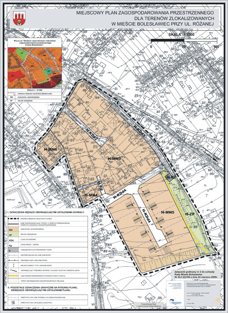 Uchwała Nr XLI/337/09 z dnia 24 czerwca 2009r. w sprawie uchwalenia miejscowego planu zagospodarowania przestrzennego terenów zlokalizowanych w mieście Bolesławiec (obszar nr 1 przy ul. Widok, obszar nr 2 przy ul. Różanej, obszar nr 3 przy ul. Ptasiej, obszar nr 4 przy ul. Mostowej, obszar nr 5 przy ul. Ceramicznej)