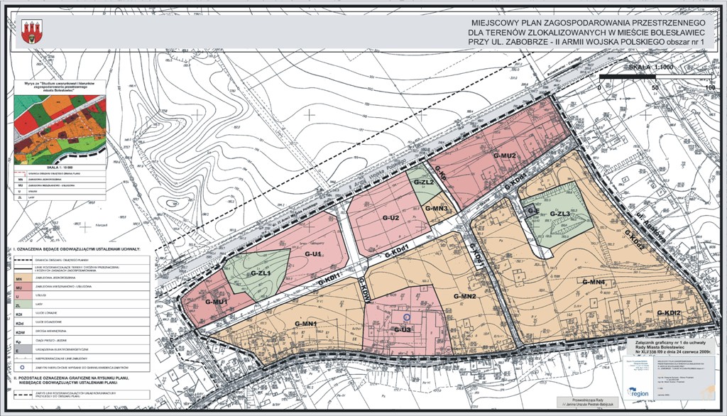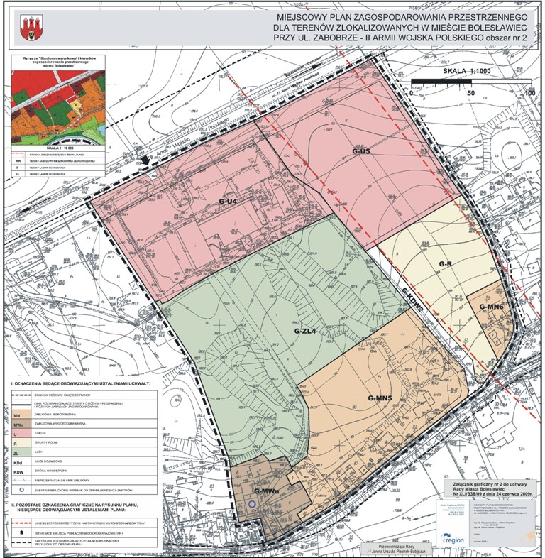 Uchwała Nr XLI/338/09 z dnia 24 czerwca 2009r. w sprawie uchwalenia miejscowego planu zagospodarowania przestrzennego terenów zlokalizowanych w mieście Bolesławiec (obszar nr 1 przy ul. Zabobrze - II Armii Wojska Polskiego, obszar nr 2 przy ul. Zabobrze - II Armii Wojska Polskiego, obszar przy ul. Zabobrze)