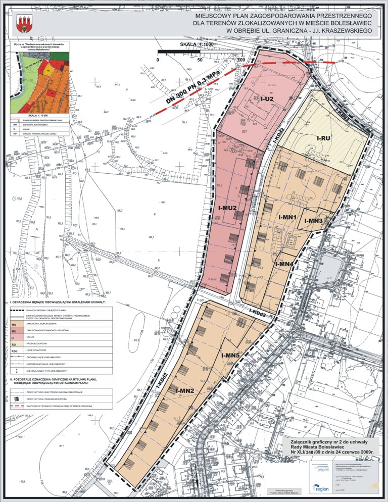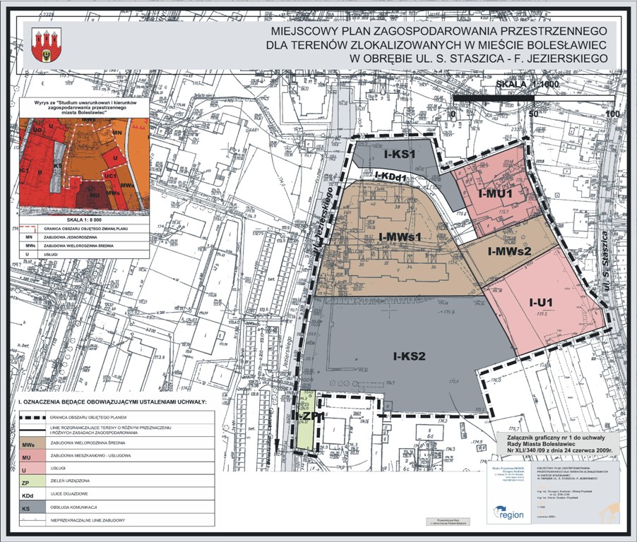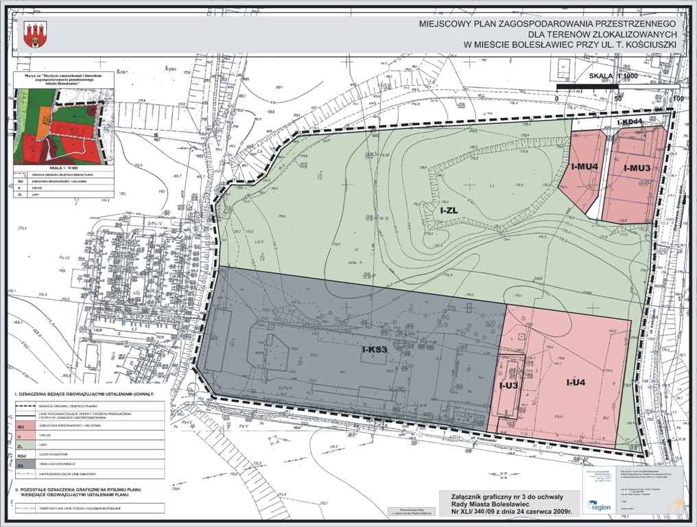 Uchwała XLI/340/09 z dnia 24 czerwca 2009r. w sprawie uchwalenia miejscowego planu zagospodarowania przestrzennego terenów zlokalizowanych w mieście Bolesławiec (obszar nr 1 w obrębie ulic Staszica - Jezierksiego, obszar nr 2 w obrębie ulic Graniczna - Kraszewskiego, obszar nr 3 przy ul. Kościuszki)