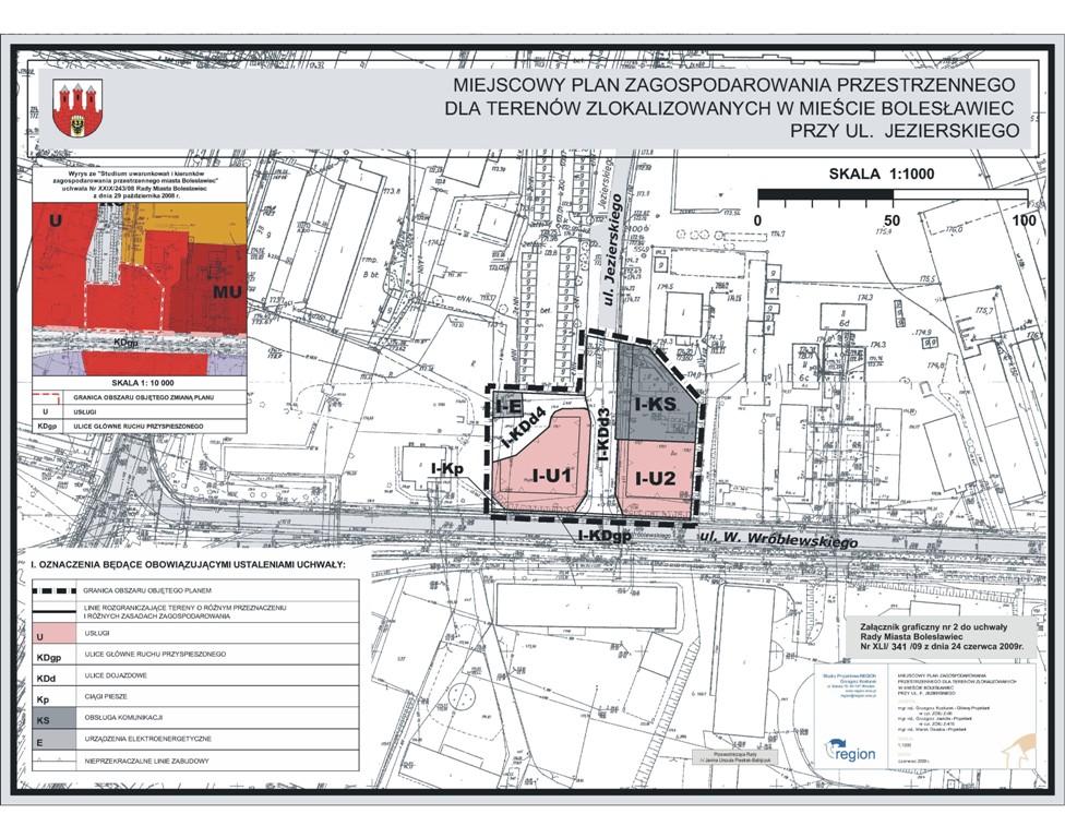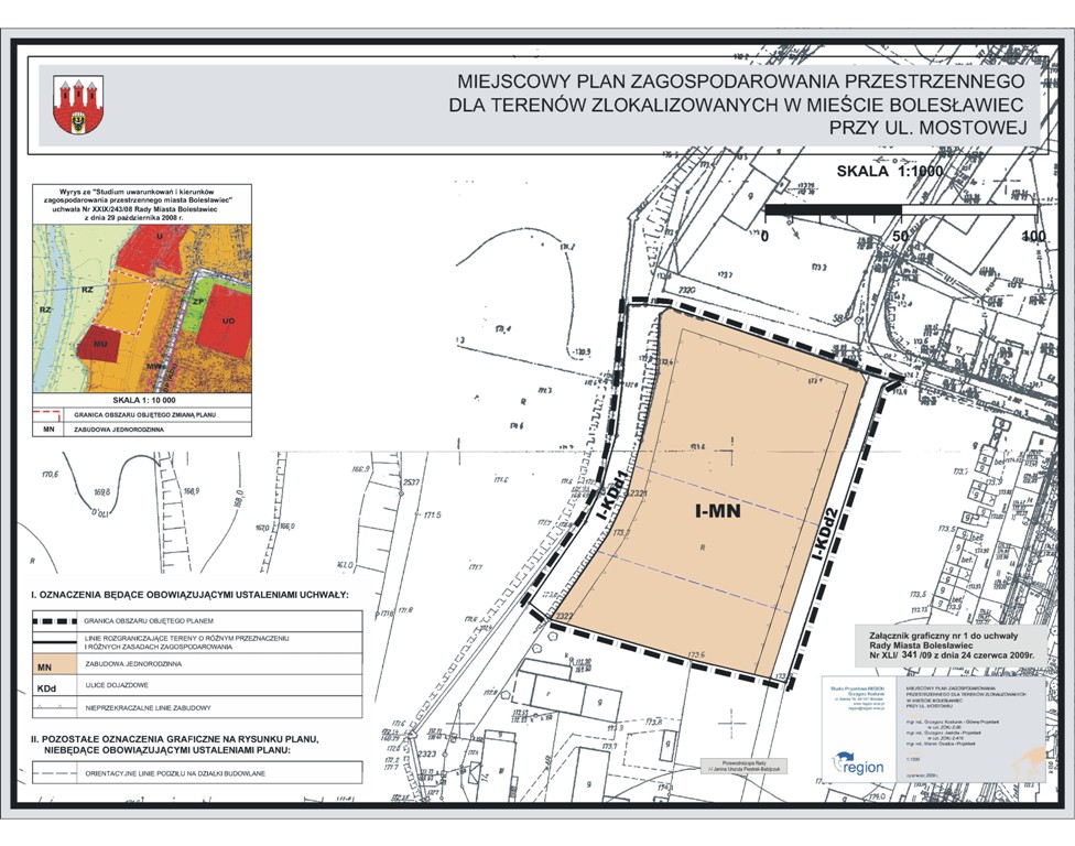 Uchwała Nr XLI/341/09 z dnia 24 czerwca 2009r. w sprawie uchwalenia miejscowego planu zagospodarowania przestrzennego terenów zlokalizowanych w mieście Bolesławiec (obszar nr 1 przy ul. Mostowej, obszar nr 2 przy ul. Jezierskiego)