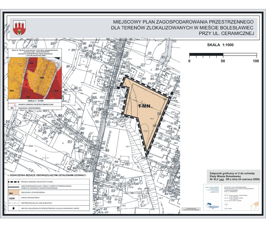 Uchwała Nr XLI/342/09 z dnia 24 czerwca 2009r. w sprawie uchwalenia miejscowego planu zagospodarowania przestrzennego terenów zlokalizowanych w mieście Bolesławiec ( obszar nr 1 przy ulicy II Armii Wojska Polskiego, obszar nr 2 przy ulicy Ceramicznej)