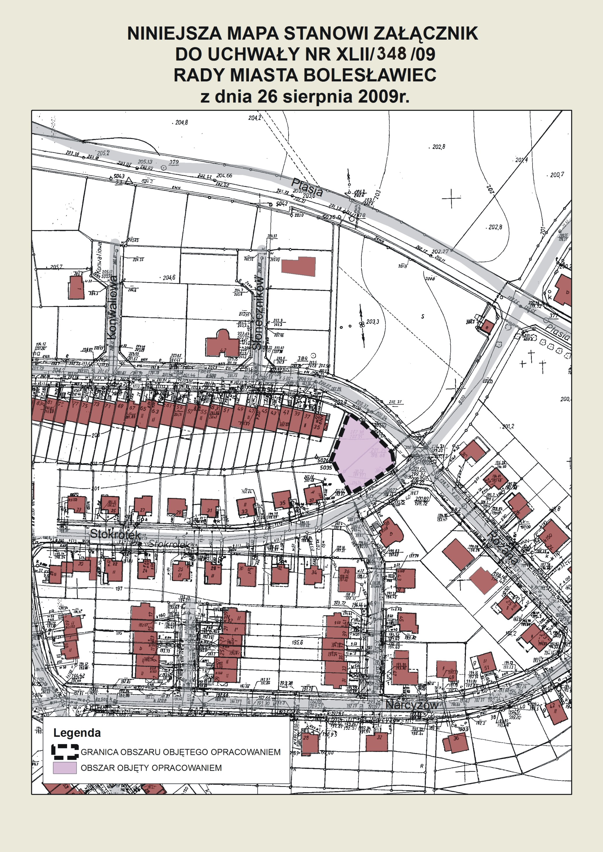 Uchwała Nr XLII/348/09 z dnia 29 sierpnia 2009r. w w sprawie przystąpienia do sporządzenia miejscowego planu zagospodarowania przestrzennego dla terenu zlokalizowanego w obrębie ulic: Stokrotek - Różana w Bolesławcu