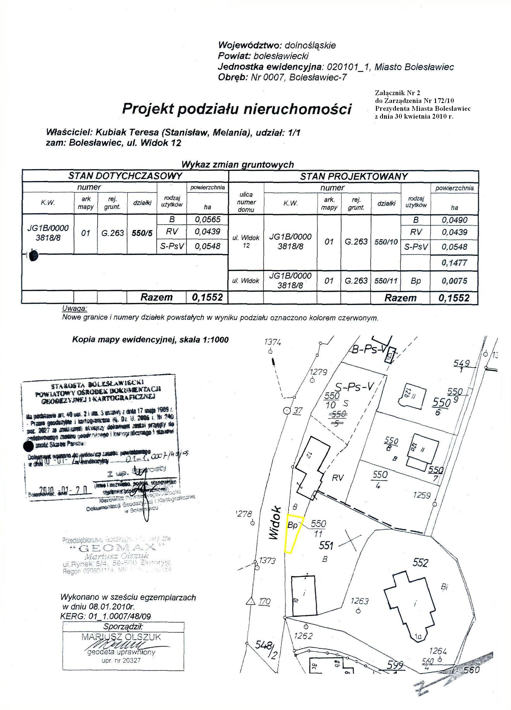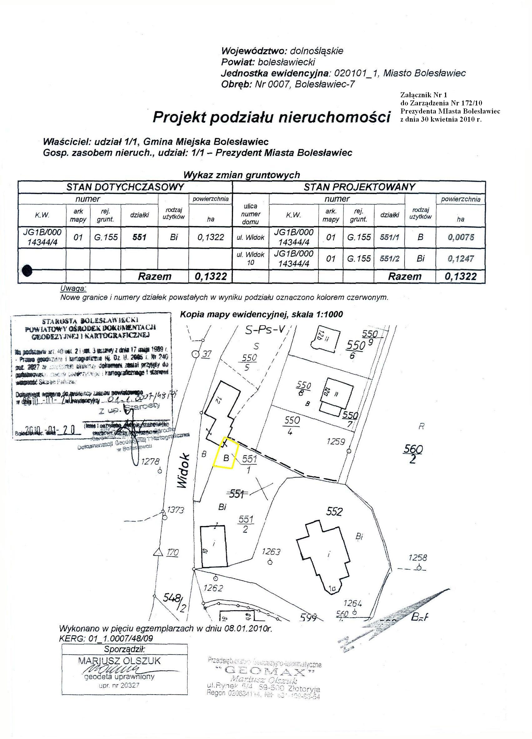 zamiany nieruchomości gruntowych niezabudowanych położonych przy ul. Widok w Bolesławcu, obręb 0007, Bolesławiec-7