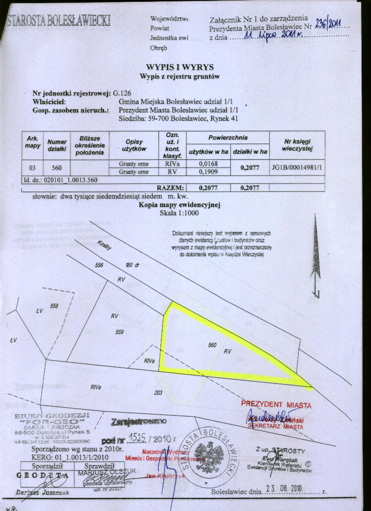 zmiany zarządzenia Nr 181/11 Prezydenta Miasta Bolesławiec z dnia 30 maja 2011 r. w sprawie przeznaczenia gruntu położonego przy pl. ks. J. Popiełuszki do oddania w dzierżawę na okres 3 lat - w drodze bezprzetargowej