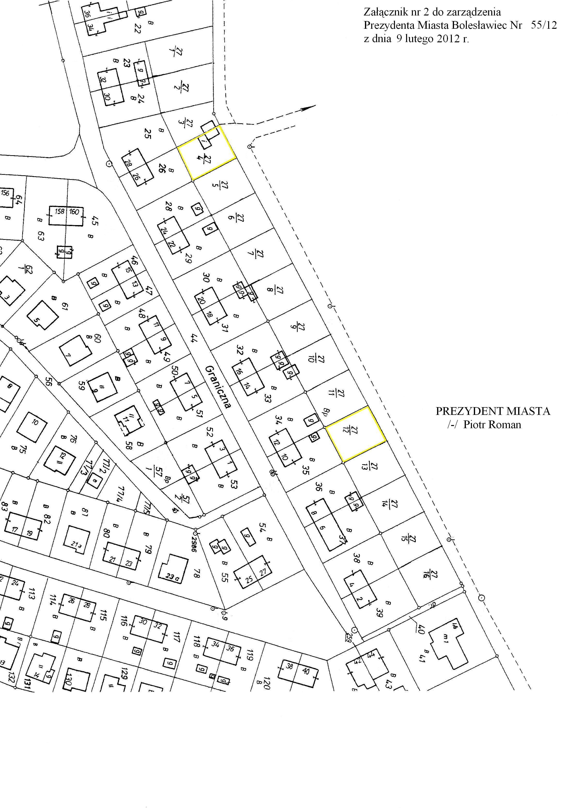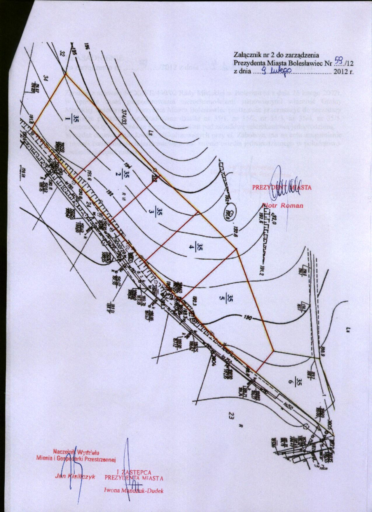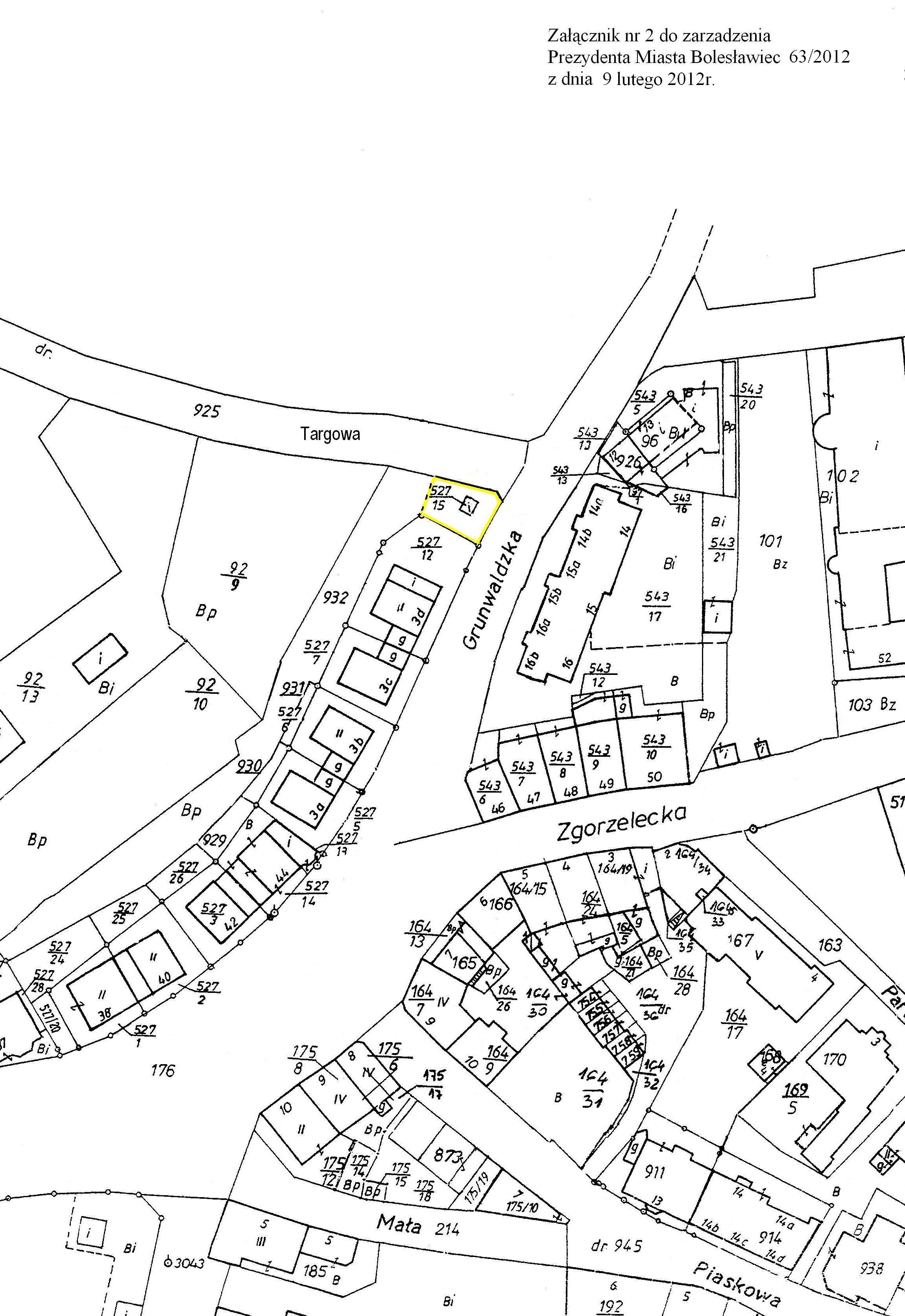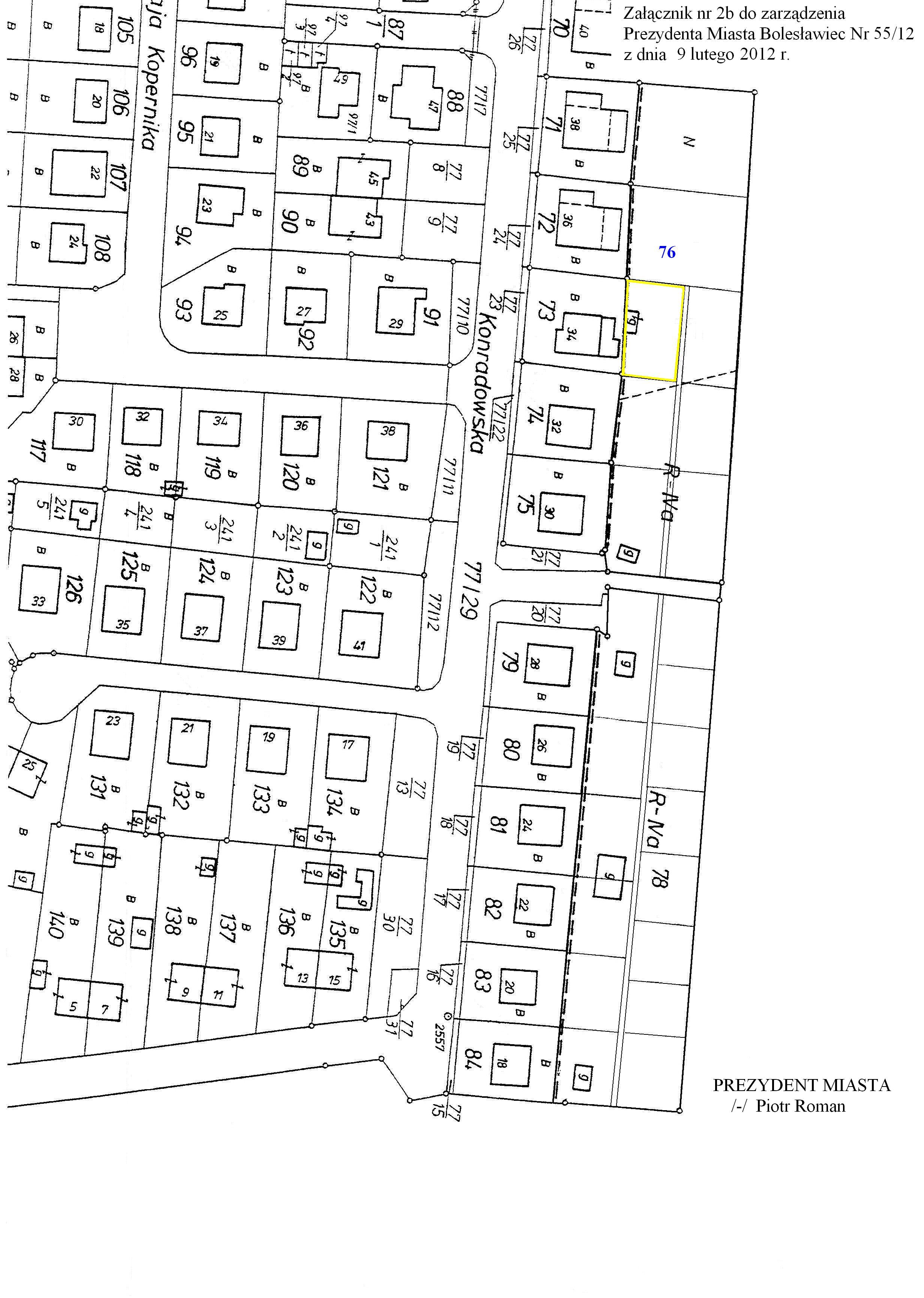 76/12  16.02.2012  obniżenia ceny wywoławczej z II przetargu ustnego nieograniczonego na sprzedaż nieruchomości gruntowej zabudowanej budynkiem handlowo-usługowym, położonej przy ul. Z. Augusta 29 w Bolesławcu, w związku z przeznaczeniem tej nieruchomości do sprzedaży - w drodze III przetargu ustnego nieograniczonego