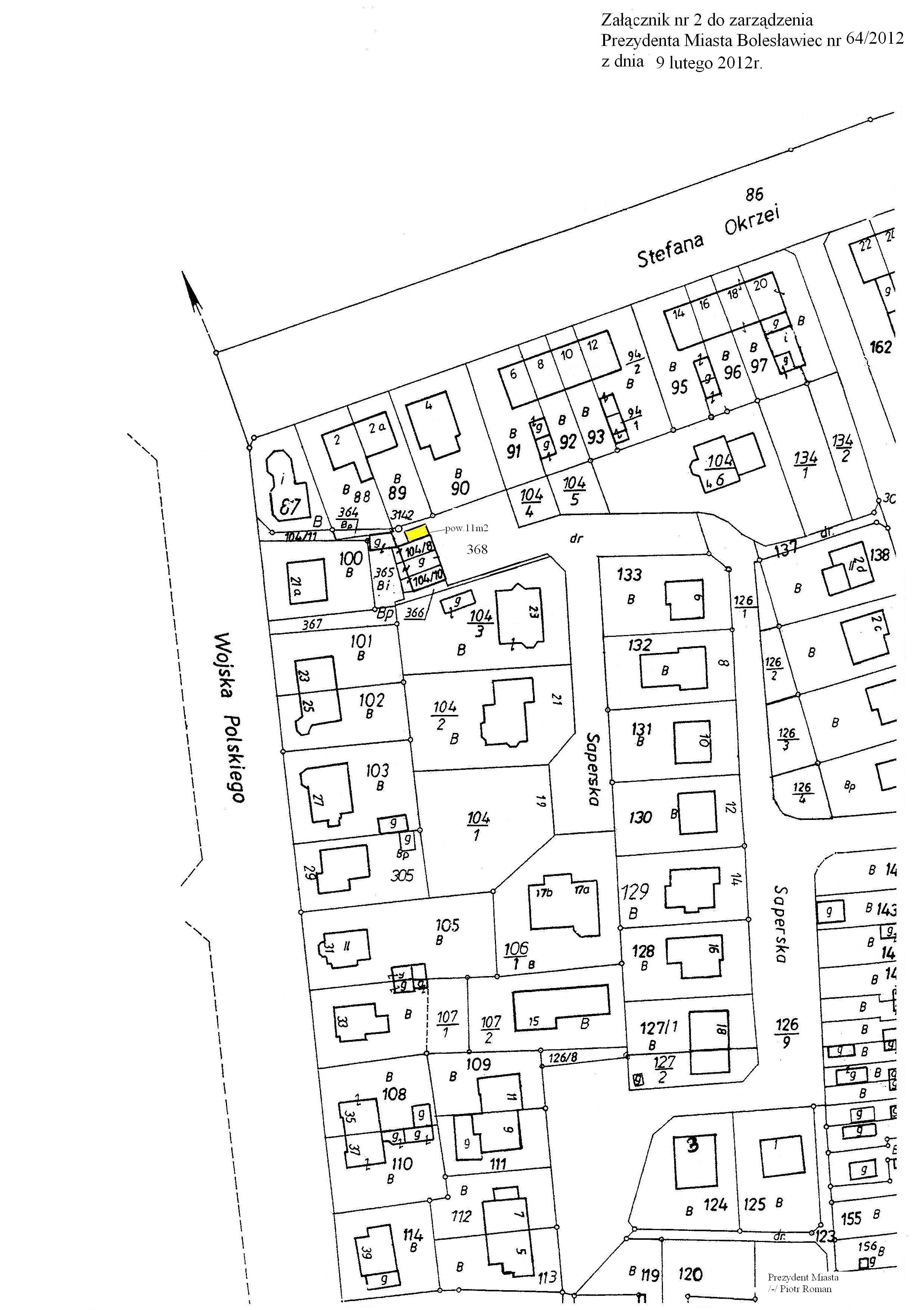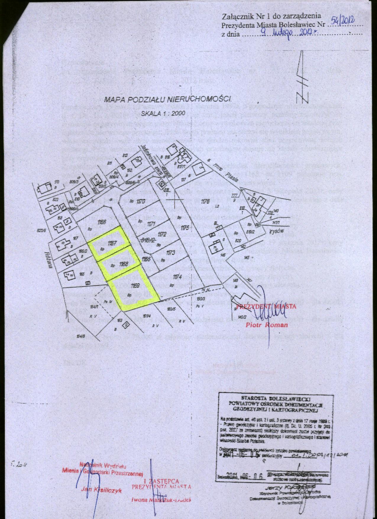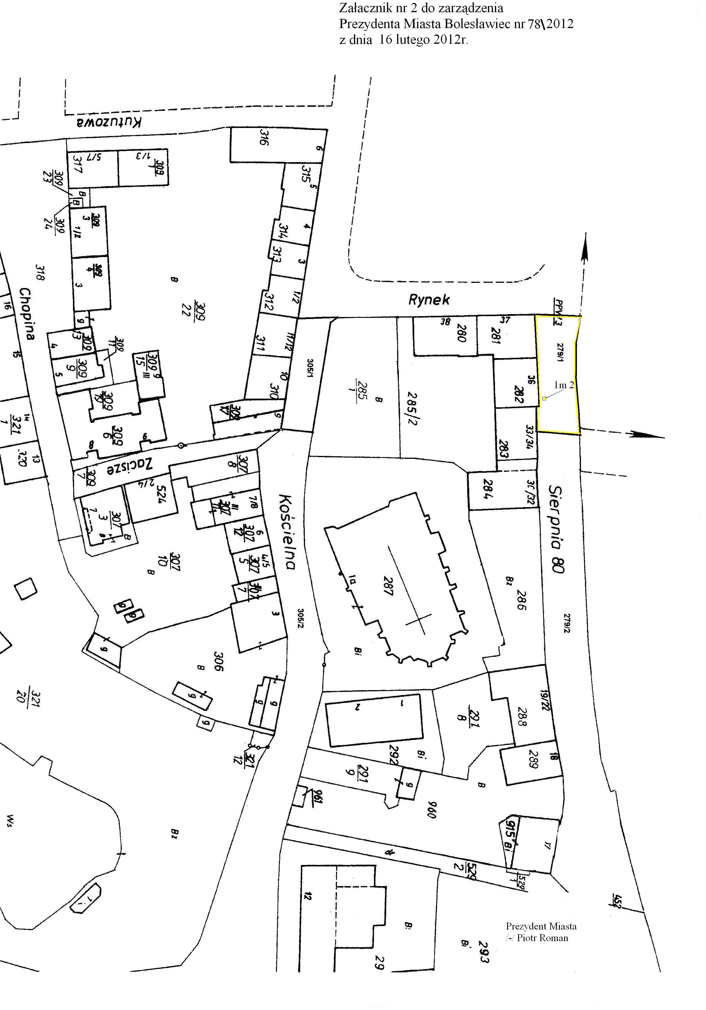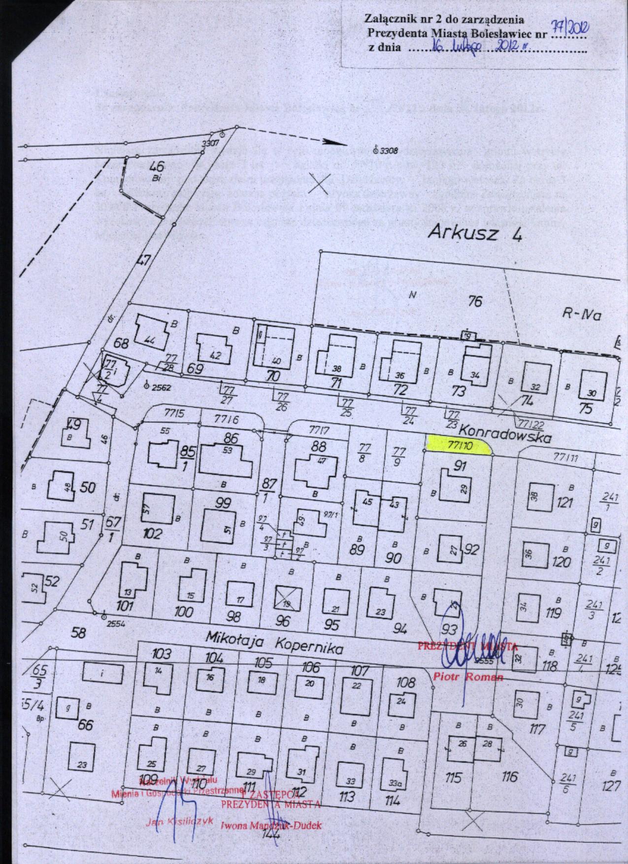 76/12  16.02.2012  obniżenia ceny wywoławczej z II przetargu ustnego nieograniczonego na sprzedaż nieruchomości gruntowej zabudowanej budynkiem handlowo-usługowym, położonej przy ul. Z. Augusta 29 w Bolesławcu, w związku z przeznaczeniem tej nieruchomości do sprzedaży - w drodze III przetargu ustnego nieograniczonego